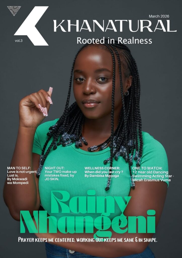 In this issue, super talented Rainey Nthangeni allows us to get under her gorgeous skin. Meet Jo Sin, our skin whisperer as she fixes our make up errors. We ask you to define “healthy living”, while enjoying chef Nelly’s power spinach mania. Micah Erusmus Vuma is only 12 and already a dynamic performer, definitely our One To Watch. Mokwadi says “Love is not urgent, lust”. Let’s conclude our pages warmly with a good cry in conversation with Dambisa via the wellness corner.