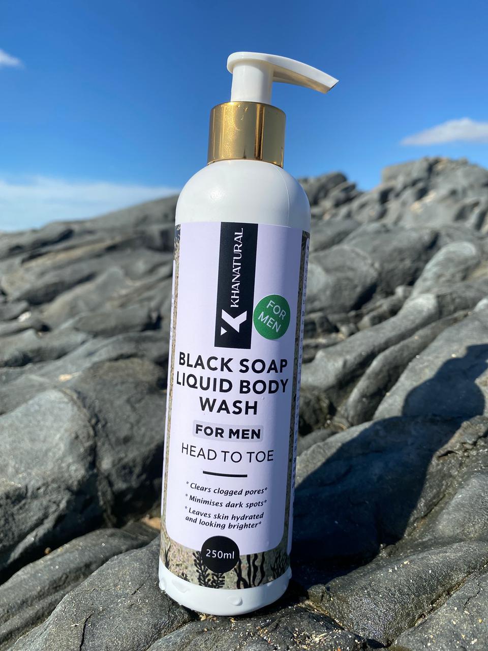 Black soap liquid body wash is a natural cleansing product made from traditional ingredients like palm kernel oil, shea butter, cocoa pods, and plantain skin ashes. It is used to cleanse the body and can benefit various skin types, helping with issues like acne, dryness, and irritation, while also being used as a shampoo and shaving cream. The liquid form is more convenient to use and often formulated with moisturizing ingredients like shea butter, aloe, and coconut oil, but it can still be drying for some and should be used with caution.