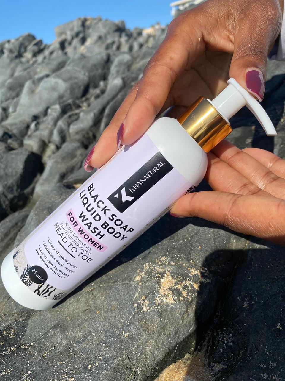 Black soap liquid body wash is a natural cleansing product made from traditional ingredients like palm kernel oil, shea butter, cocoa pods, and plantain skin ashes. It is used to cleanse the body and can benefit various skin types, helping with issues like acne, dryness, and irritation, while also being used as a shampoo and shaving cream. The liquid form is more convenient to use and often formulated with moisturizing ingredients like shea butter, aloe, and coconut oil, but it can still be drying for some and should be used with caution.